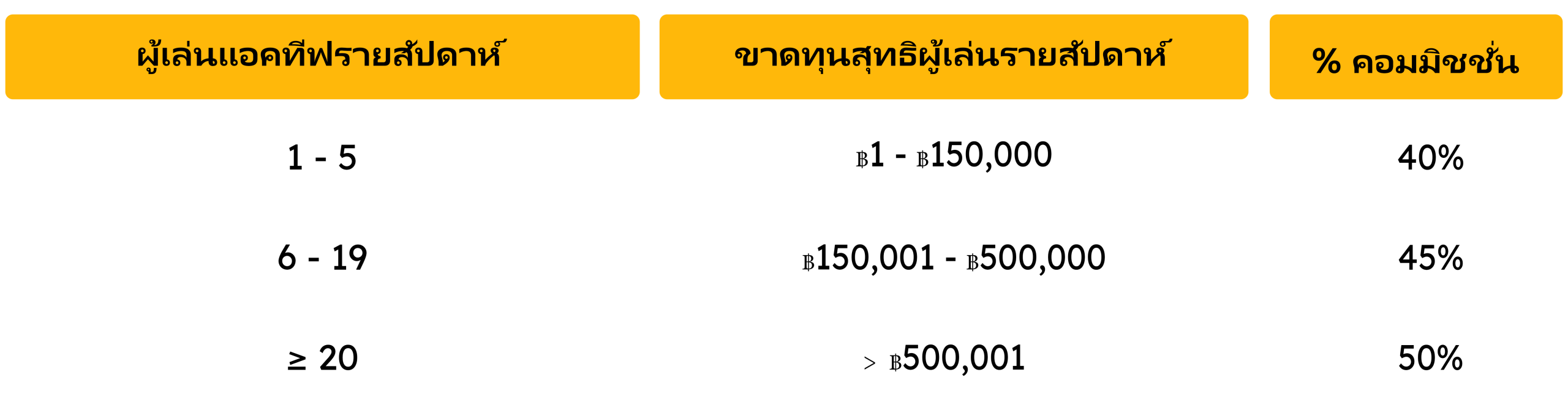 การชำระค่าคอมมิชชั่นรายสัปดาห์จะดำเนินการทุกวันพุธ ไม่เกินเวลา 17:00 น.